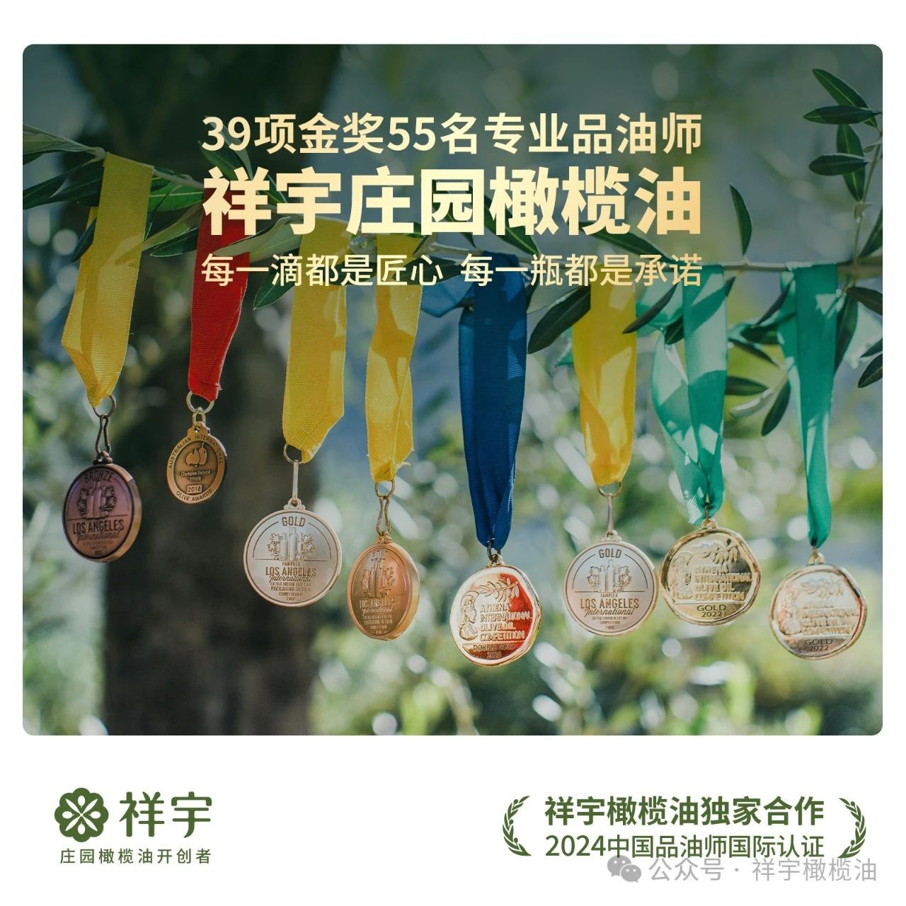 已累計獲得 39 項金獎,成為中國所有橄欖油品牌中的獲獎翹楚。這一輝煌成就不僅彰顯了祥宇橄欖油的卓越品質(zhì),
