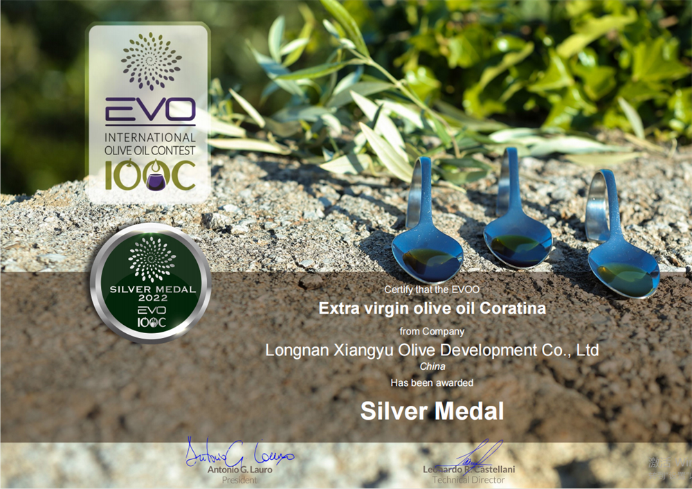 隴南市祥宇油橄欖開發(fā)有限責任公司選送的“祥宇牌”特級初榨橄欖油在本次大賽中榮獲一金一銀兩枚獎牌。