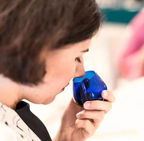 聞:把品油杯拿在下巴的位置可以聞一下它的味道,